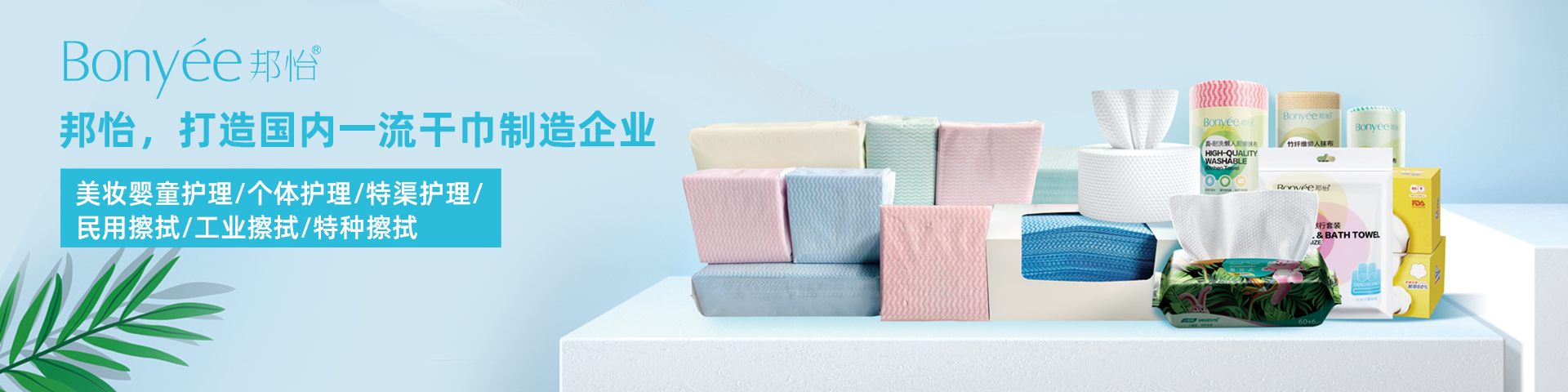 BUSINESS SUMMARY邦怡20年專注非織造材料干巾制品的研發(fā)和生產(chǎn),品涵蓋家居清潔類,美容個(gè)護(hù)類,工業(yè)擦拭類以及醫(yī)療護(hù)理等四大品類。業(yè)務(wù)遍及日本、美國(guó)、韓國(guó)、澳大利亞等國(guó)家。多年以來(lái),為國(guó)際合作伙伴提供有效的產(chǎn)品解決方案和OEM、ODM生產(chǎn)配套服務(wù)。